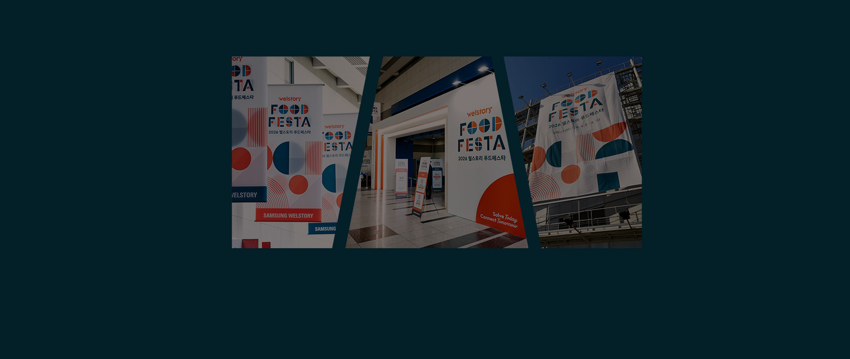 이번에는 사전 등록자 수가 전년보다 30% 이상 늘어났을 정도로 행사 전부터 업계의 관심이 뜨거웠어요. 현장에 들어서기도 전에 입구부터 북적이는 분위기가 느껴질 정도였으니까요. 올해의 슬로건은 "Solve Today, Connect Tomorrow" 로, 현재 직면한 식음업의 고민에 필요한 솔루션을 찾고 내일의 비즈니스를 삼성웰스토리와 함께 만들어 가자는 의미가 담겨 있습니다.