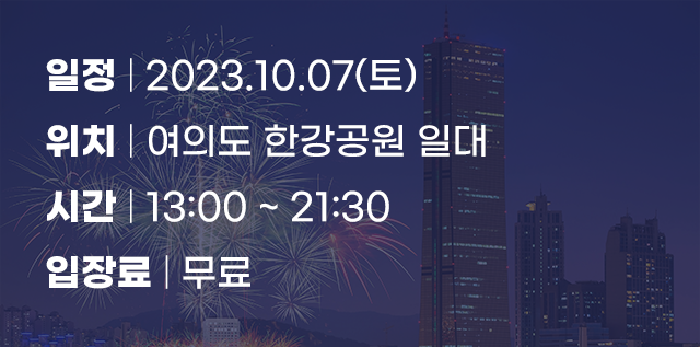 2023년 여의도 불꽃축제 일정은 10월 7일 토요일로, 오후 1시부터 6시까지는 다양한 시민참여 프로그램이 준비되어 있습니다.