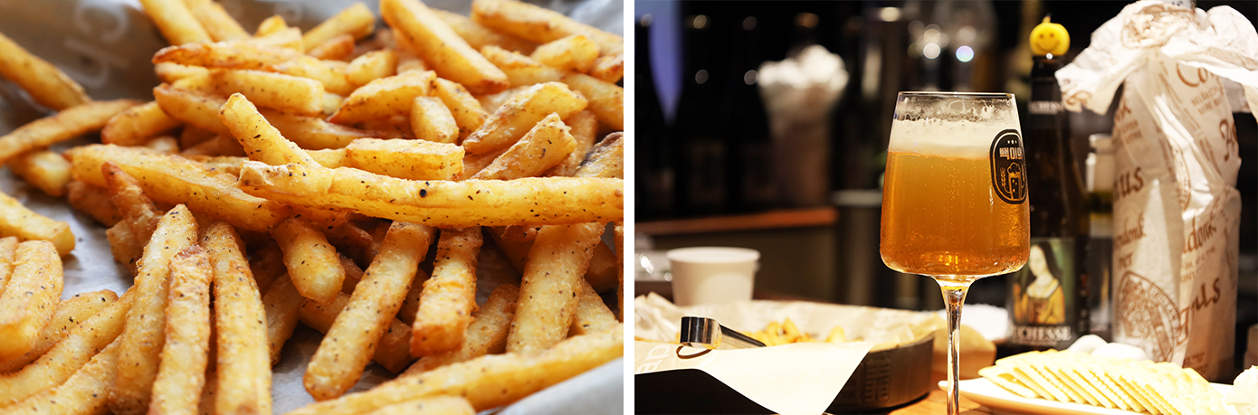 꼴깍꼴깍~ 벨기에산 맥주와 이제 막 튀긴 따끈한 감자튀김의 조합이라니.