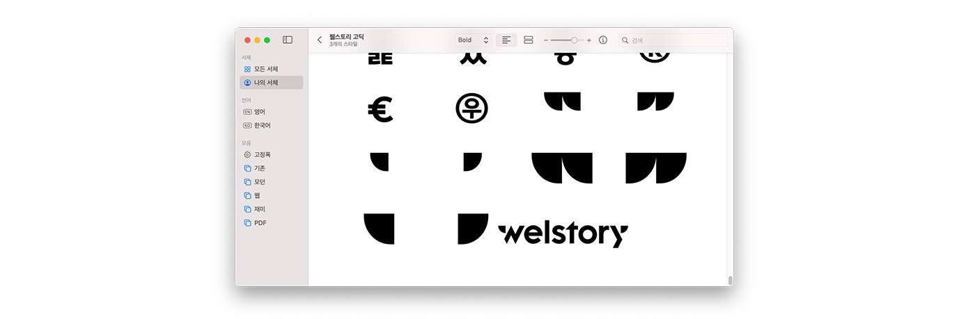 새롭게 개발된 서체가 여러분께 더 좋은 이야기를 전할 수 있도록, 앞으로도 웰스토리 브랜딩 활동에 많은 관심 부탁드릴게요.